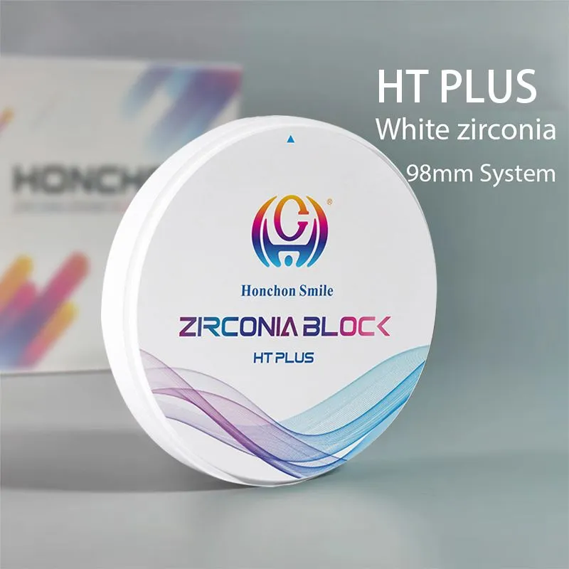 HONCHON 98×14 HT bílý zirkonový kotouč je určen pro výrobu stabilních a spolehlivých zubních náhrad, jako jsou korunky a můstky. S pevností v ohybu kolem1350 MPaa průsvitnost asi40%je vhodný pro výplně zadních partií a můstky s dlouhým{0}}rozpětím.